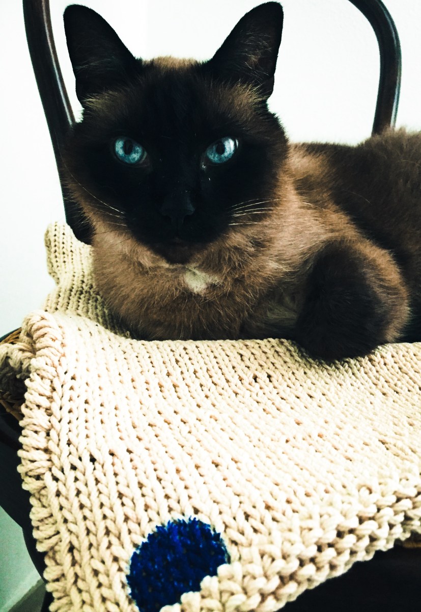Il mio gatto Menelao sul tappeto-coperta DIY